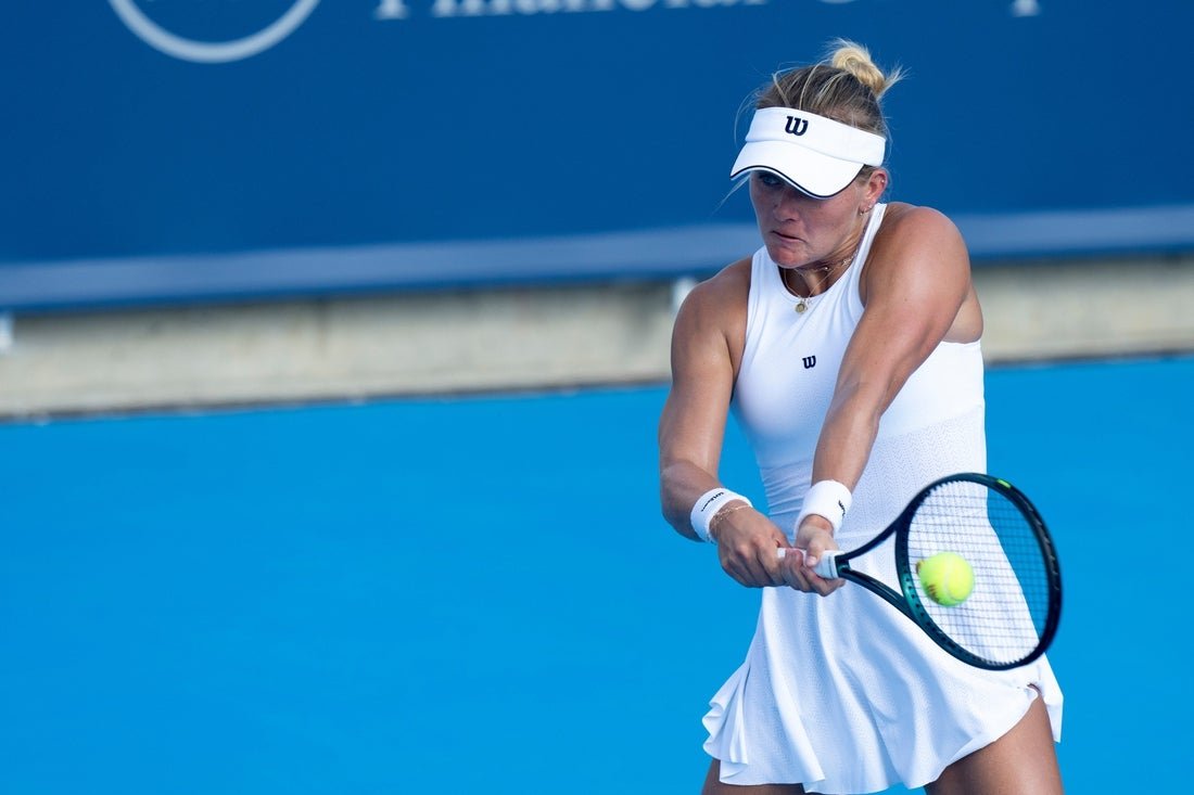 2025 年 8 月 9 日,美國選手佩頓·斯特恩斯 (Peyton Stearns) 在俄亥俄州梅森市林德納家庭網球中心 (Lindner Family Tennis Center) 舉行的辛辛那提公開賽上回歸俄羅斯選手安娜·卡林斯斯卡婭 (Anna Kalinskaya)。