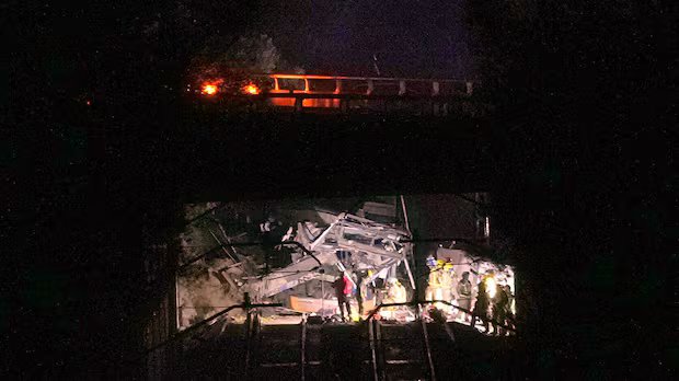西班牙地方當局稱,巴塞羅那一列通勤列車週二因擋土牆倒塌而墜毀,造成一人死亡、至少 37 人受傷。