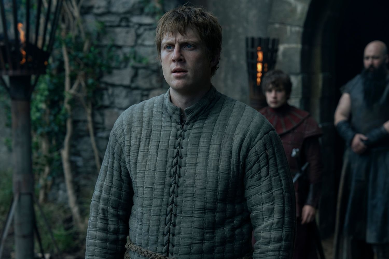 《七國騎士》第一季第 4 集中的肖恩·托馬斯、威廉·休斯頓、德克斯特·索爾·安塞爾和優素福·卡庫爾。