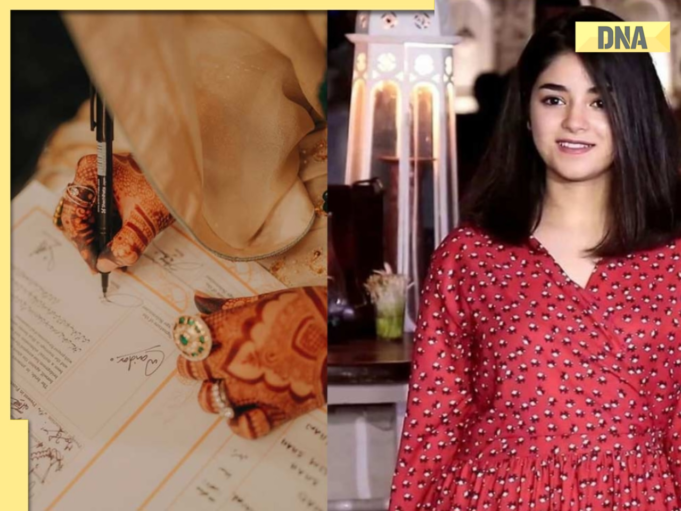 這位 24 歲的男子上傳了兩張看似親密婚禮的照片。最初的照片顯示她簽署了婚約,她的手上裝飾著複雜的曼海蒂設計,並配有祖母綠戒指。接下來是新娘和新郎背對著鏡頭站在夜空下看著月亮的照片。扎伊拉身穿深紅色杜帕塔,上面繡著精緻的金線,而新郎則在這個特殊的日子穿著奶油色的捨瓦尼和配套的披肩。 “Qubool hai x3,(原文如此),”她為帖子添加了標題。
