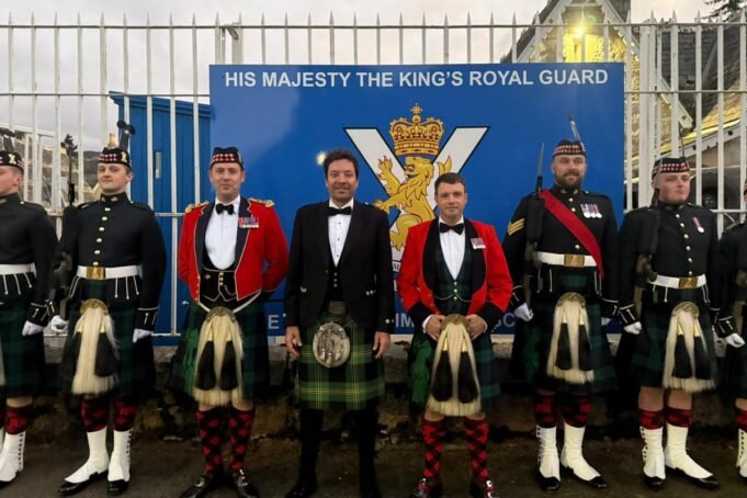 美國電視明星吉米·法倫在皇家迪賽德度假期間受到了一些高地人的熱情款待。