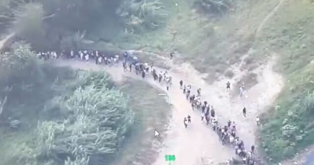 影片顯示有人不規則地渡河