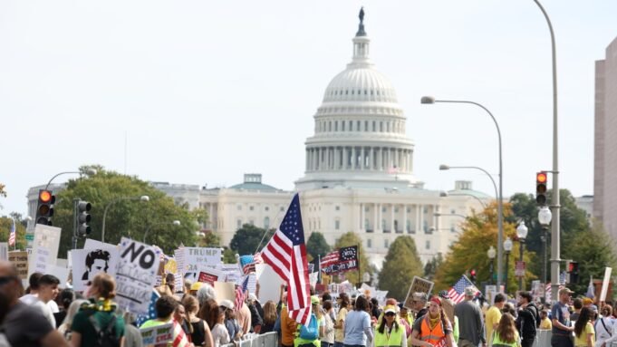 據組織者稱,週六全國范圍內約有 700 萬人參加了 2700 多場反獨裁抗議活動。如果估計正確,這將是美國歷史上最大規模的單日抗議活動之一。儘管遊行總體上是和平的,甚至是歡快的,但這並沒有阻止包括總統在內的右翼人物對當天的事件做出巨大反應。