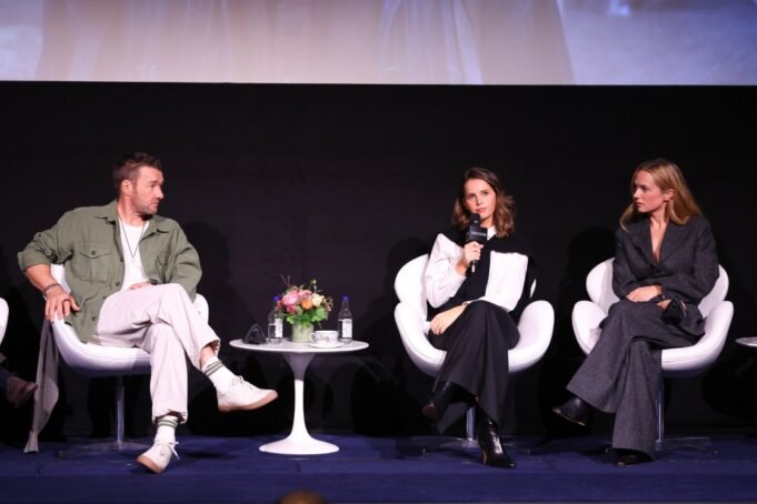 喬爾·埃哲頓、菲麗希緹·瓊斯和凱瑞·康登在克林特·本特利導演的世紀之交史詩片中討論了他們的旅程。 火車夢想 在倫敦的競賽小組期間。