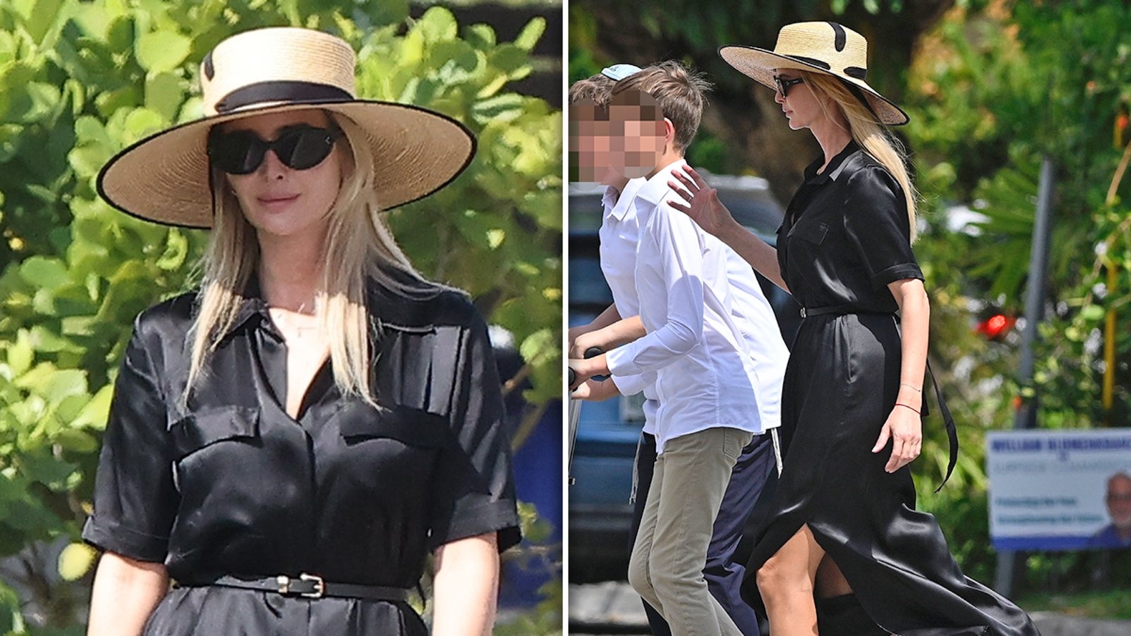 在照片中,你可以看到伊凡卡帶著她的兩個兒子,他們騎著踏板車跟在後面。她戴著黑色墨鏡,戴著大遮陽帽,周圍繫著配套的黑色絲帶,保持低調的造型。