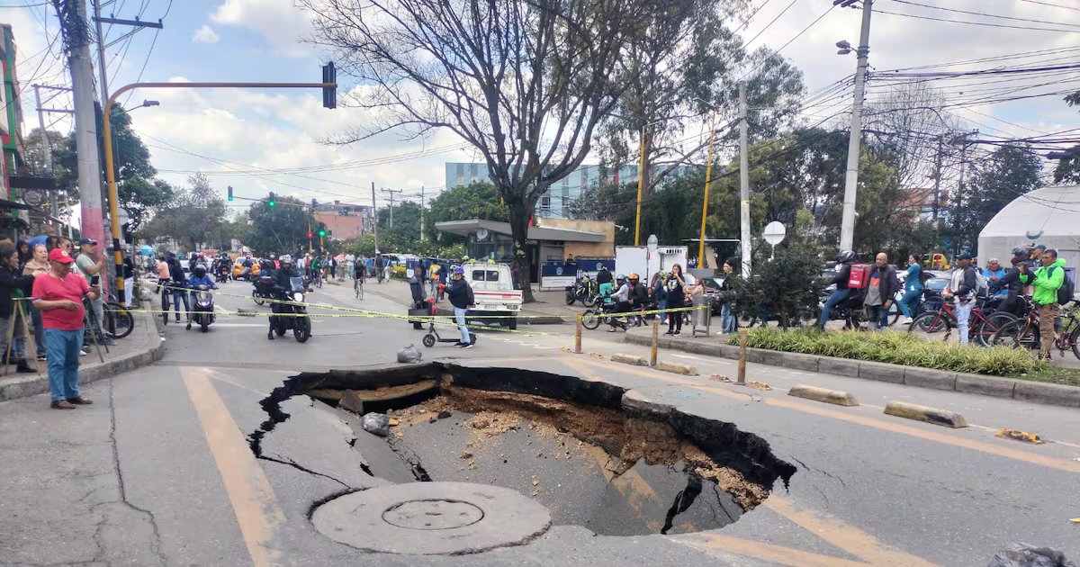 路中央突然塌陷,路人大吃一驚 蕎麥麵市、 3月7日下午,波哥大,事故發生在一個路口 Calle 139 和 Carrera 126A,位於 La Gaitana 區域當瀝青塌陷並露出一個大洞時,它就停止了移動。