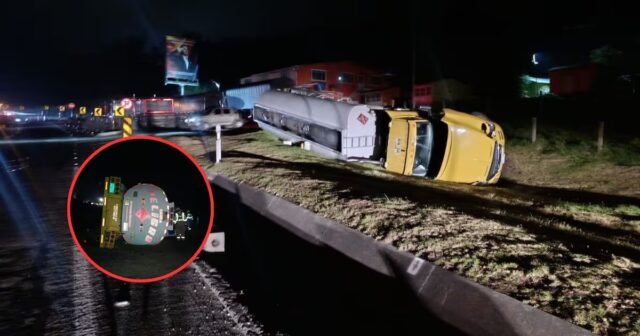 此後,工作人員一直在努力控制溢出液體並確保該區域的安全防止火花或超越其他車輛造成更大的悲劇。