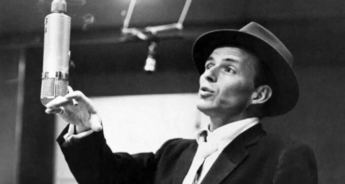 1955 年左右,弗蘭克·辛納屈 (Frank Sinatra) 在錄音室裡。