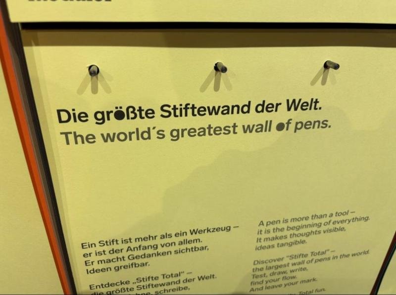 參觀者可以使用“德國製造”的高品質、可重新填充的紐蘭記號筆繪製、書寫和塑造一個數米的牆壁空間。這就是筆牆——或者更確切地說:世界上最大的標記牆——一個激發靈感、交流和分享經驗的地方。