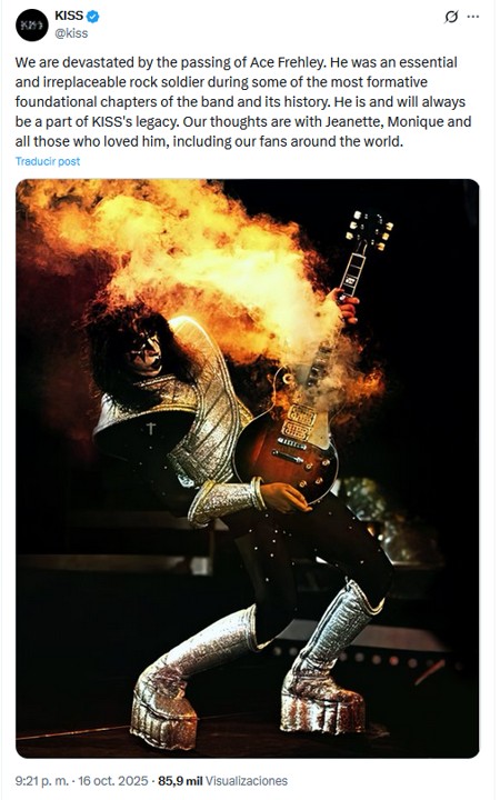 Minuto30.com – 傳奇樂隊 KISS 在其社交網絡上發布的感人消息中正式宣布其吉他手兼創始成員 Ace Frehley 去世。