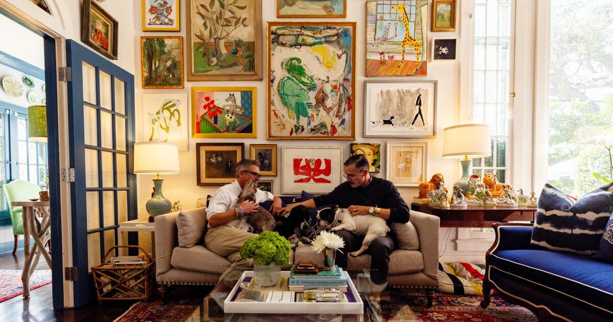 他們的家色彩繽紛,有一種「奶奶時尚」的感覺,波爾的祖母吉吉把她在亞特蘭大家裡的東西留給了他。這是一個有趣的英式裝飾,維多利亞時代的格子呢盒子和第一次世界大戰前的黑木鹿角,雕刻的木牌曾經用作狩獵戰利品。他們還有英國斯塔福德郡的瓷狗和長頸鹿雕像、老式英國和法國琺瑯盤,以及在 Etsy、eBay 和拍賣會上找到的燈具和地毯。