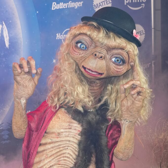 但去年她上廁所的時候她絕對沒有給他打電話 東京酒店 吉他手丈夫 湯姆·考利茨 她打扮成 1982 年經典電影中的同名角色 ET 外星人