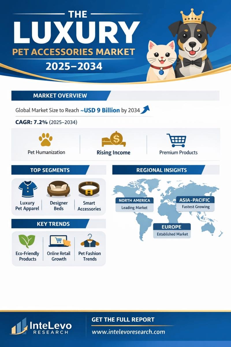 豪華床具市場預計將從 2025 年的 49 億美元增長到 2034 年的 90 億美元,2025-2034 年復合年增長率約為 7.2%。寵物的日益人性化和可支配收入的增加顯著增加了對優質寵物生活方式產品的需求。這些品牌專注於定制、環保材料和時尚前衛的設計,吸引現代寵物主人。隨著寵物文化在全球不斷發展,奢華配飾正在成為身份、風格和情感依戀的象徵。高端化和不斷增長的寵物人性化趨勢加速了全球豪華寵物配件市場的需求 IntelEvo Research 發布了其最新的行業研究報告,題為“豪華寵物配件市場 – 2025-203 年全球行業分析、規模、份額、增長、趨勢和預測”。該報告提供了對關鍵地區的市場規模、收入預測、競爭定位和戰略增長機會的詳細見解。隨著寵物主人越來越多地投資於高端產品,包括設計師服裝、豪華寵物床、生活方式產品和個人服裝,全球豪華寵物配件市場正在獲得強勁的發展勢頭。可支配收入的增加和消費者對優質寵物護理的行為的改變預計將在預測期內推動市場的穩定擴張。欲了解更多信息,請訪問@ https://www.intelevoresearch.com/reports/luxury-pet-accessories-market/為什麼這個市場現在很重要?來源: 優質寵物擁有趨勢的增長 在線和專業零售渠道的擴展 對環保和可持續產品的需求不斷增長 品牌合作和時尚寵物系列 北美的強勁增長和亞太地區不斷增長的機會 公司將在戰略計劃中優先考慮高利潤公司。 2025-2034.誰應該訪問此報告?此報告適合於: 寵物配件製造商 進入寵物領域的奢華生活方式品牌和行業顧問 您會得到什麼?經過驗證的市場規模和復合年增長率預測(2025-2034) 競爭格局分析 區域機會評估 投資和擴張戰略見解 可定制的業務規劃數據支持 索取免費樣本報告。 https://www.intelevoresearch.com/reports/luxury-pet-accessories-market/或直接聯繫我們的分析師: sales@intelevoresearch.com 戰略買家和投資者可以提前諮詢。聯繫我們:IntelEvoResearch City, P20, Hyderabad Main, Hyderabad, Mata 10 Main City Telangana 500081 電子郵件:sales@intelevoresearch.com 電話:+91 7385257575 網站:https://www.intelevoresearch.com/IntelEvo ResearchIntelEvo Research 是一家醫療保健、技術和工業領域的全球市場研究和諮詢公司。本出版物發佈在 openPR 上。