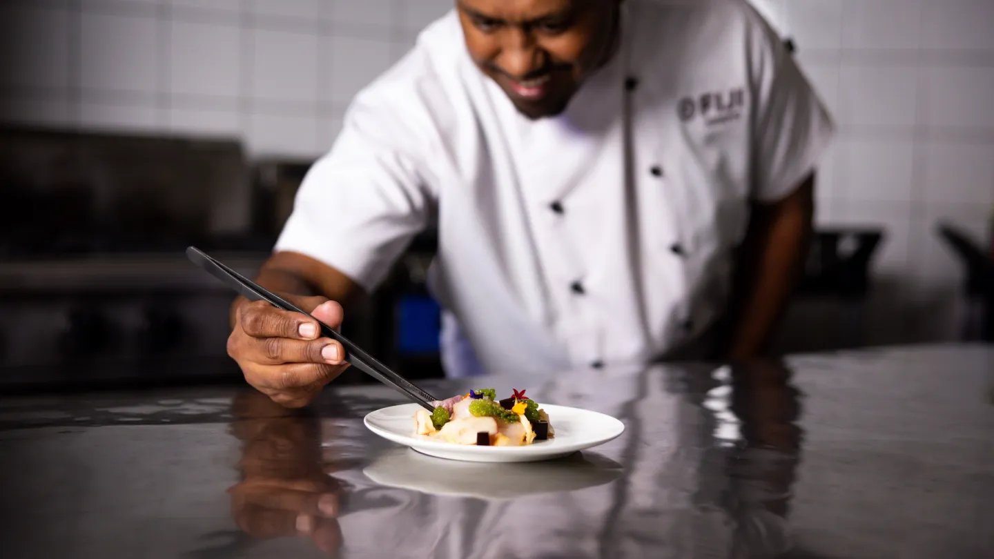 當地菜餚和風味均採用金橘、澳洲堅果、nama(也稱為「斐濟海葡萄」)以及當地香草和香料等食材。部分航線還提供斐濟咖哩雞(靈感源自斐濟在東南亞的眾多根源)和 mahi mahi 或烤 hamachi crudo 等菜餚,向太平洋島嶼提供新鮮海鮮的致敬。斐濟航空表示,受廚師啟發的菜單反映了“斐濟在亞洲、大洋洲和北美十字路口的獨特地位”,同時使用“注重可持續採購的斐濟當地食材”。