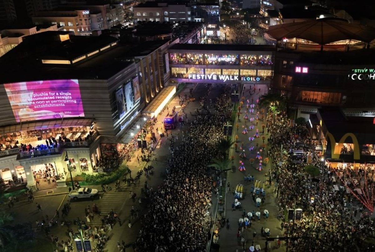 Megaworld表示,超過10萬名節日觀眾聚集在伊洛伊洛商業園觀看國際勞工組織一年一度的盛大花車遊行和盛大的煙花表演。 Mega World 生活時尚購物中心圖片
