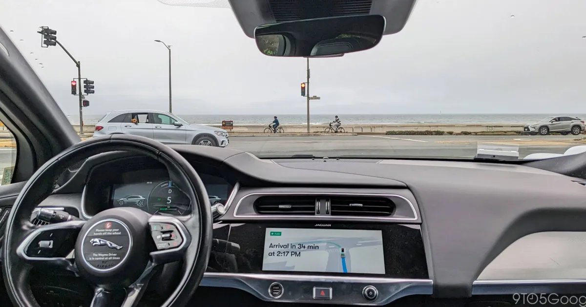 目前,Waymo 使用一輛白色捷豹 I-Pace,車輛周圍裝有各種感測器。頂部還有一個圓頂,在您抵達時顯示您名字的首字母縮寫。