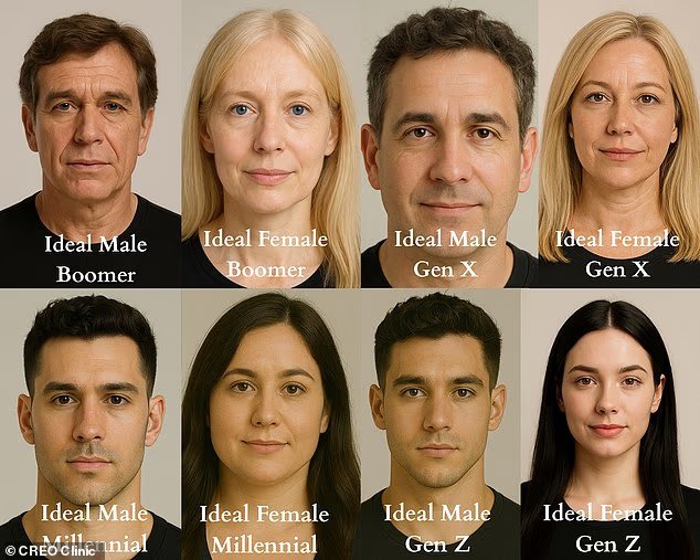 一項新的研究揭示了不同世代的英國人認為“理想”的男人和女人是什麼樣子。圖為:人工智能根據最流行的答案生成的圖像
