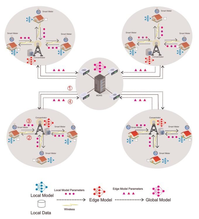 用於智能電網入侵檢測的概念聯合學習架構。該圖顯示了一個三層結構——本地層、邊緣層和中央層——其中聚合模型更新而不傳輸原始數據,從而實現隱私保護分析。信用: 網絡安全 (2025)。二:10.1186/S42400-024-00350-5