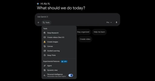 隨著 Gemini 應用程序獲得更多功能,Google 正在通過實驗實驗室改進網絡工具菜單的佈局。
