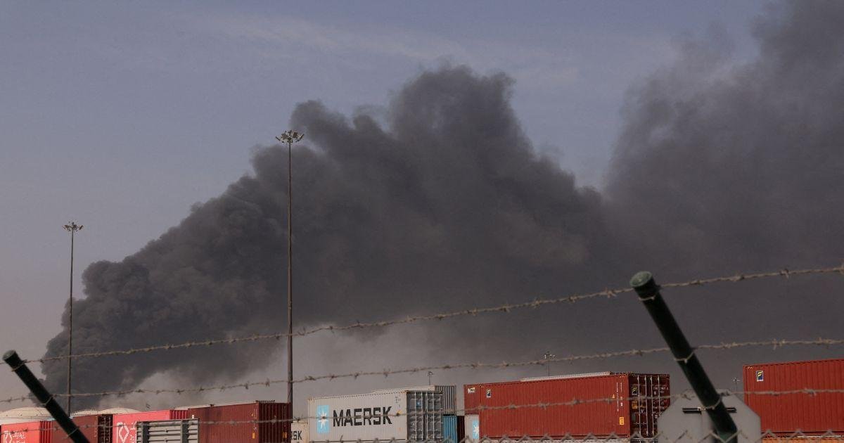圖:飛彈攻擊後,杜拜傑貝阿里港冒出濃煙。 照片:Amr Alfiky/路透社
