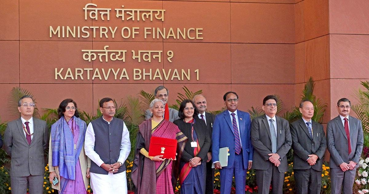 圖片:2016 年 2 月,財政部長 Nirmala Sitharaman 與 MoS Finance Pankaj Chaudhary 和部委高級官員在 Kartavya Bhawan 一起在新德里議會大廈介紹 2026 年聯邦預算。 圖片來源:印度新聞信息局