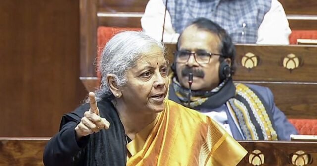 圖片:財政部長 Nirmala Sitharaman 在 2 月 5 日預算會議期間在聯邦院發表講話。 照片:Sansad TV/ANI Video Grab