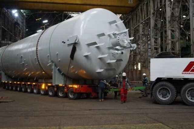 東爪哇 Gresik(安塔拉)- PT Barata Indonesia (Persero) 已完成 PT Pupuk Sriwijaya III B 項目中用於化肥廠部件的兩個壓力容器裝置的建造。