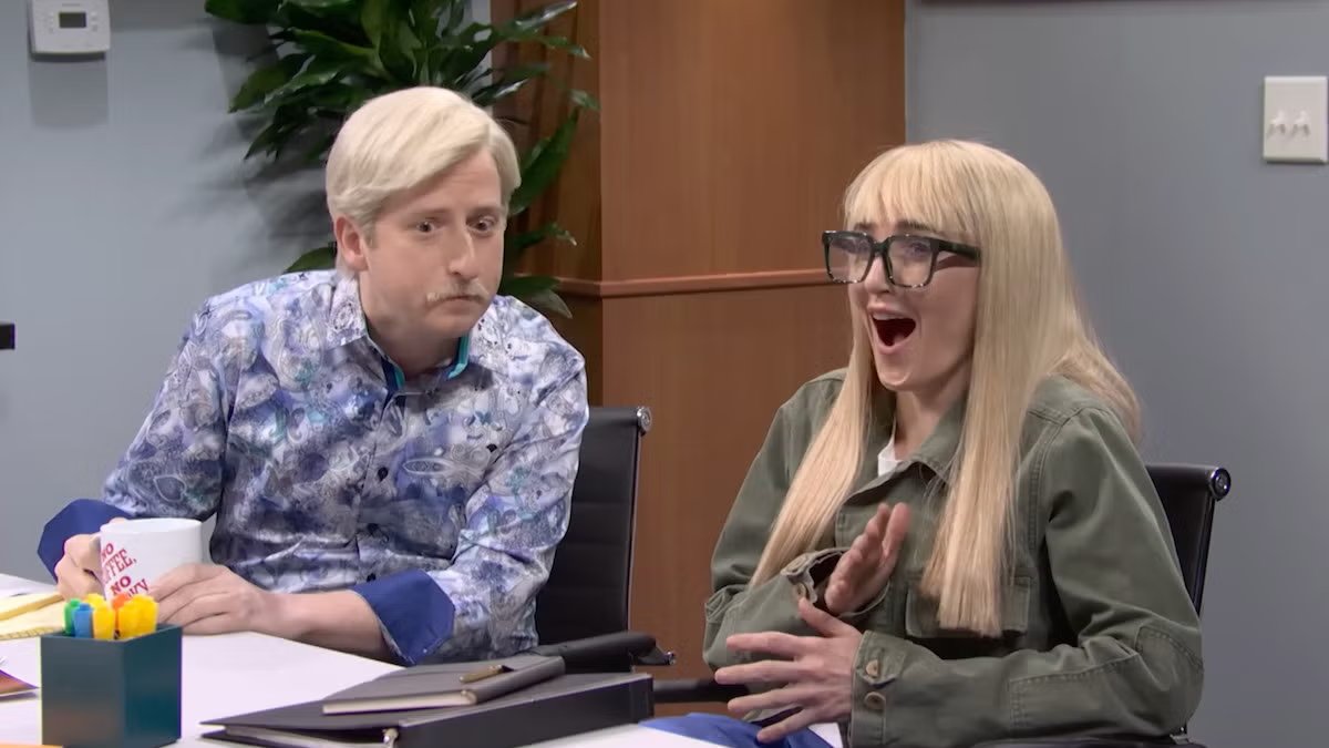 克洛伊·法恩曼(Chloe Fineman)在《幸福感》編劇室的一次不尋常的《週六夜現場》惡搞中,努力通過一個泡沫將其凝聚在一起。