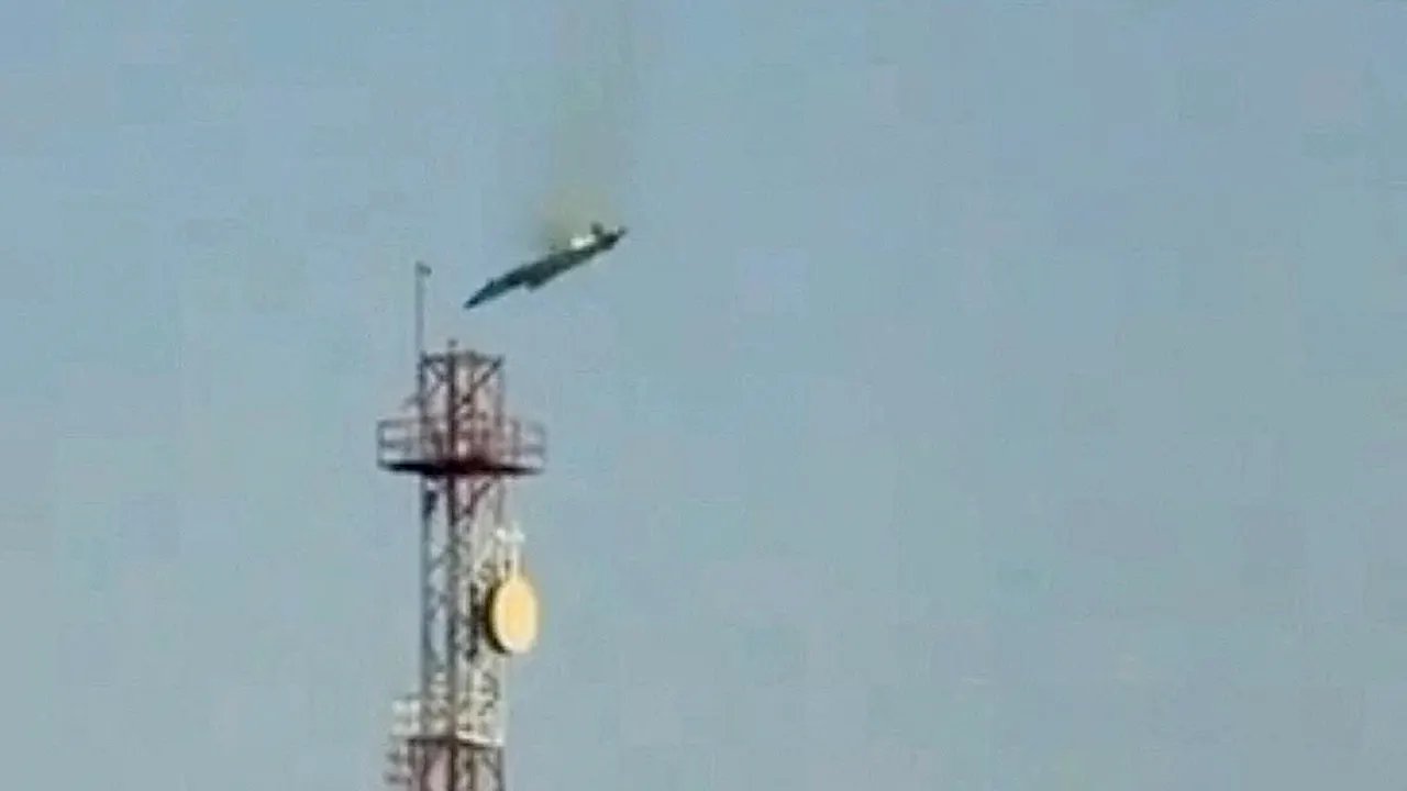 這張靜態圖像取自 2026 年 3 月 2 日發布的社交媒體視頻,一架燃燒的飛機從科威特阿爾賈赫拉的天空墜落。 (社群媒體/路透)