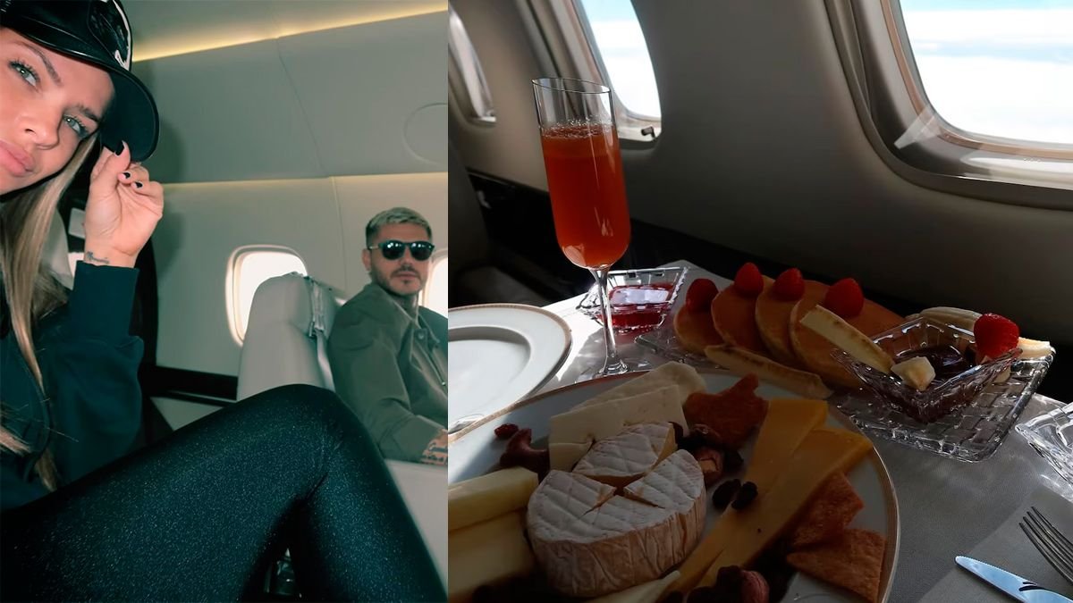 在一些明信片中,這位女演員與莫羅一起出現在一架私人飛機上,兩人都穿著深色衣服。齊納穿著閃亮的緊身衣和黑色連帽衫,而伊卡爾迪則穿著軍綠色夾克,有著白金般的頭髮和她標誌性的造型。另一張照片顯示了飛行期間提供的餐桌:美味的早餐 玻璃杯中的煎餅、水果、布里乾酪、堅果和果汁一切都安排在飛機窗邊,可以看到雲彩。