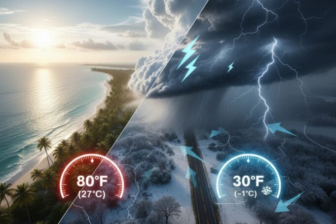 這是一股冷鋒 推進冷氣團和暖氣團之間的邊界。這個“邊緣”從北向南移動,迫使暖空氣 爬過冰冷的床墊 並隨著時間的推移引起顯著的變化。
