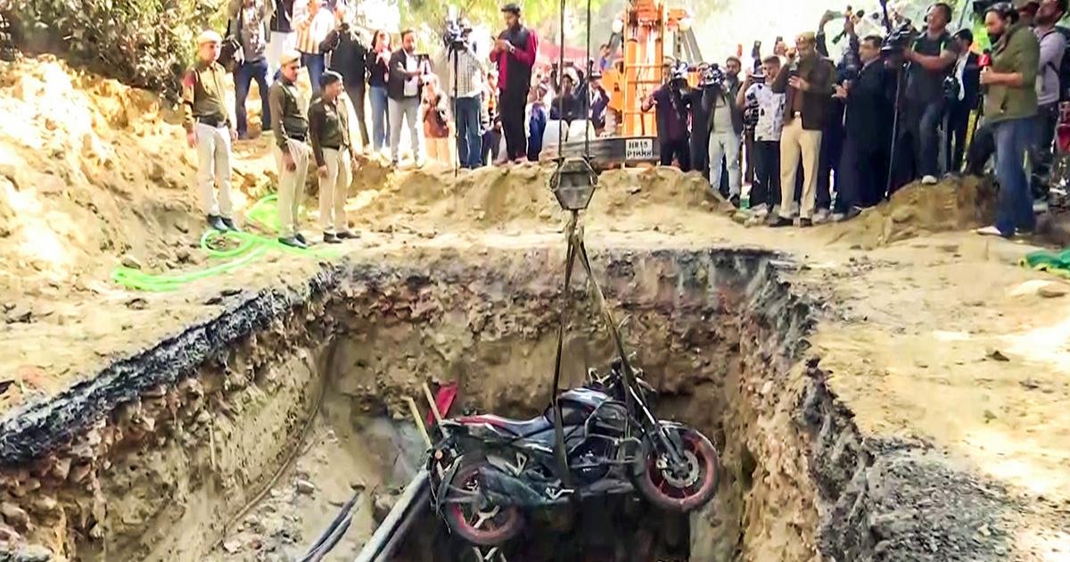圖片:2026 年 2 月 6 日,新德里賈納克普里事故受害者的輕便摩托車從坑中出來。 照片:ANI 照片