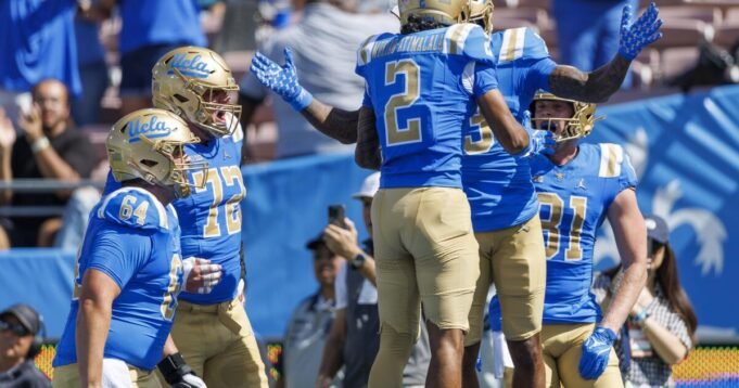 Imealeava進行了三次達陣,又進行了兩次達陣,因為棕熊隊(總計1-1,十大)幾乎使整個賽季的先前高點翻了一番。面對第四季度中期的第三個目標和目標,Iamaleava退後一步,然後起飛並在最後一個區域的右前角比賽。然後,他向誇奇吉爾默(Kwazi Gilmer)進行了兩分轉換的傳球,這給了UCLA以42-28的優勢。