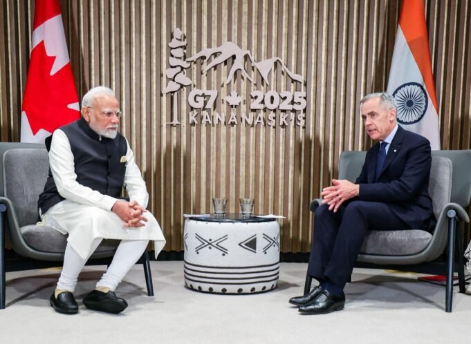 圖片:總理納倫德拉·莫迪(Narendra Modi)在2025年6月18日在卡納納斯基斯(Kananaskis)舉行的第51 G7峰會的場外與加拿大馬克·卡尼(Mark Carney)總理舉行了雙邊會議。 照片:DPR PMO/ANI照片