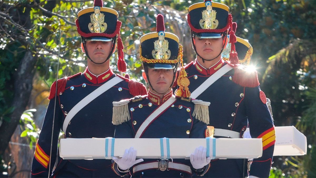 聖馬丁之劍於本週六上午被拔除 國家歷史博物館本週六上午。 幾個小時後,他抵達歷史悠久的聖洛倫索修道院,等待被運送到擲彈兵團。