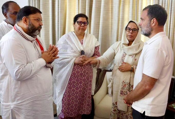圖片:國大黨領袖拉胡爾·甘地向昌迪加爾已故伊普斯·普蘭·庫馬爾的家人表示哀悼。 照片:AICC/Ani 照片