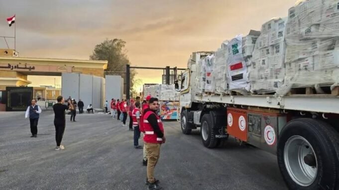 消息人士和目擊者稱,食品卡車和人道主義援助物資開始進入凱雷沙洛姆十字路口的拉法過境點,並從那裡運往加沙地帶。