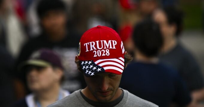 星期二,在特朗普總統與民主黨領導人之間的一次會議中,政府中斷,雷德 “特朗普2028”棒球帽 突然出現在決定性的辦公室。
