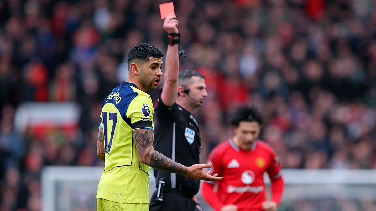 托特納姆熱刺 他有一下午的時間要忘記 英超聯賽第 25 日。不僅摔倒了 2-0 曼聯但也遭受過 消滅克里斯蒂安·“庫蒂”·羅梅羅 在 上半場第28分鐘體重減輕將使他被邊緣化 接下來的四場比賽 錦標賽的。對於阿根廷後衛來說 職業生涯第九張紅牌。