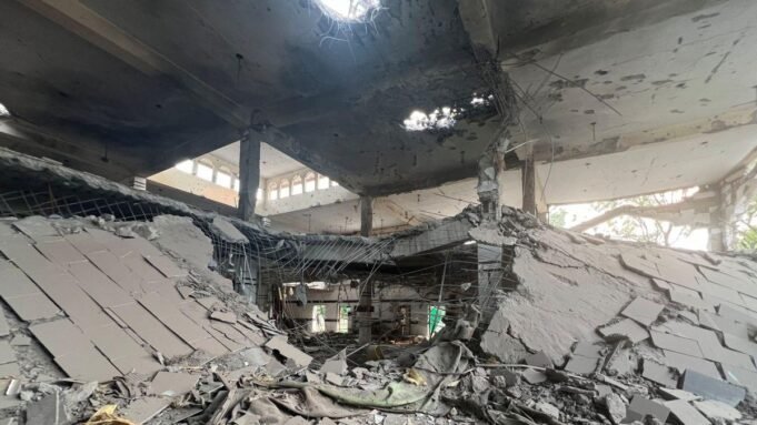 圖片:2025年5月7日在拉合爾附近的穆里德克(Muridke)擊中印度罷工後,一般的清真寺損壞的一般景色。 照片:Gibran Peshimam/Reuters
