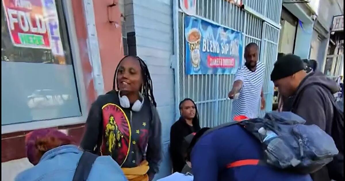 這 影片由攝影師 JJ Smith 拍攝的,顯示了舊金山第六街和 Mission 街擺設的一張桌子前排著長隊。一名排隊的男子表示,他們會得到 5 美元的報酬來簽署請願書。在桌子上,似乎有登記選民的名單,一名婦女確認付款,並使用記號筆指示一個人他應該使用的姓名和地址。