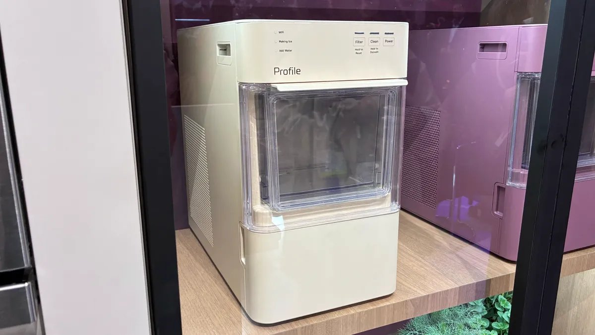 KBIS 上呈現的色彩非常豐富。我們看到了至少七種顏色,包括黑色、白色、不銹鋼、薄荷綠、紅色、黃色和粉紅色。這款小型金塊製冰機將在 geappliances.com、亞馬遜和部分零售商處發售,建議零售價為 299 美元。