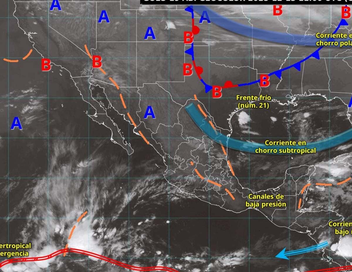 就他而言,先生 新冷鋒(21號) 它將全天延伸到墨西哥共和國的北部和東北部,與副熱帶急流相互作用,將在上述地區造成時速 40 至 60 公里的陣風。新萊昂州、塔毛利帕斯州和聖路易斯波托西州地區也有降雨和陣雨。