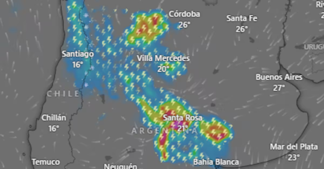 至於 風暴由一個 橙色警報 在它的南邊 里奧哈西部地區 科爾多瓦 及其中心和北部 聖路易斯。預計這些地區將出現強雷暴,部分地區會出現嚴重雷暴,並可能伴有冰雹、強烈的電活動、 爆炸 這可能會超過 時速90公里 大量的水會在短時間內落下。預計堆積量將在 30 至 70 毫米之間,局部地區可能會出現更高的堆積量。