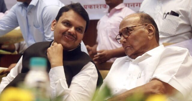 圖片:馬哈拉施特拉邦首席部長德文德拉·法德納維斯 (Devendra Fadnavis) 與 NCP-SP 領導人沙拉德·帕瓦爾 (Sharad Pawar)。 照片:ANI 照片
