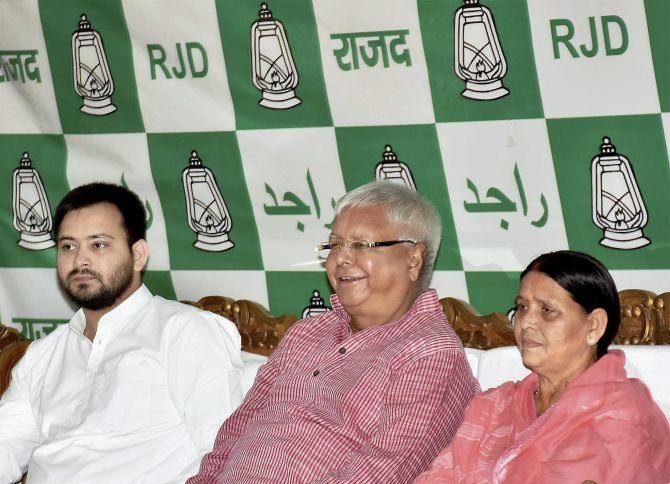 圖片:Tejashwi Yadav、Lalu Prasad Yadav 和 Rabri Devi。 照片:PTI 照片/Rediff 檔案