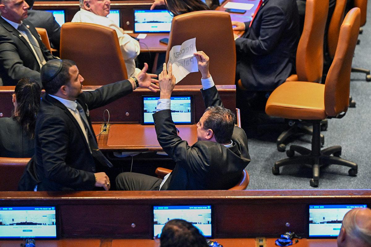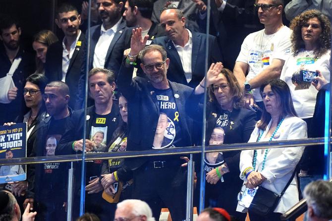 圖片:在特朗普與以色列議會交談之前,霍默的家人受到了認可。 照片:Evan Vucci/Pool 來自路透社