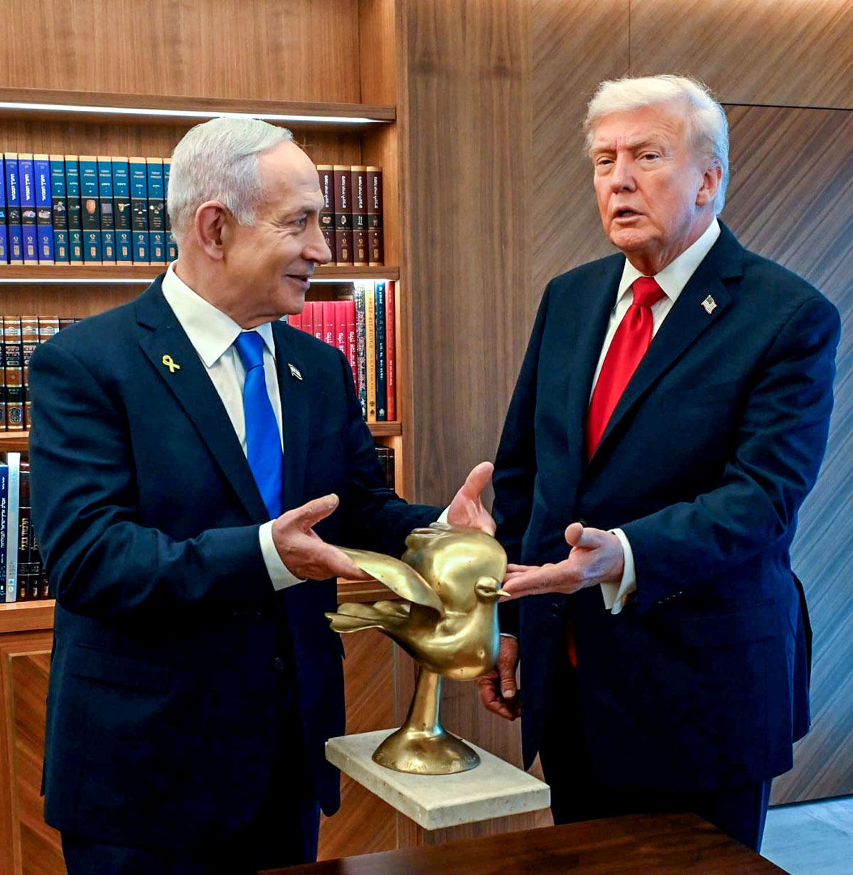 圖片:特朗普和內塔尼亞胡在以色列議會。 照片:@netanyahu