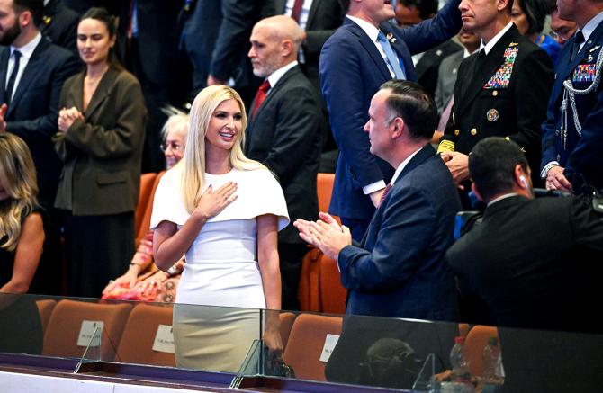 圖片:特朗普的新郎賈里德·庫什納和伊万卡·特朗普在議會中接受掌聲。 照片:Saul Loeb/Pool 來自路透社