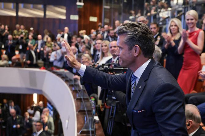 圖片:美國國防部長皮特·赫格斯在議會。 照片:Evelyn Hockstein/Pool/Reuters